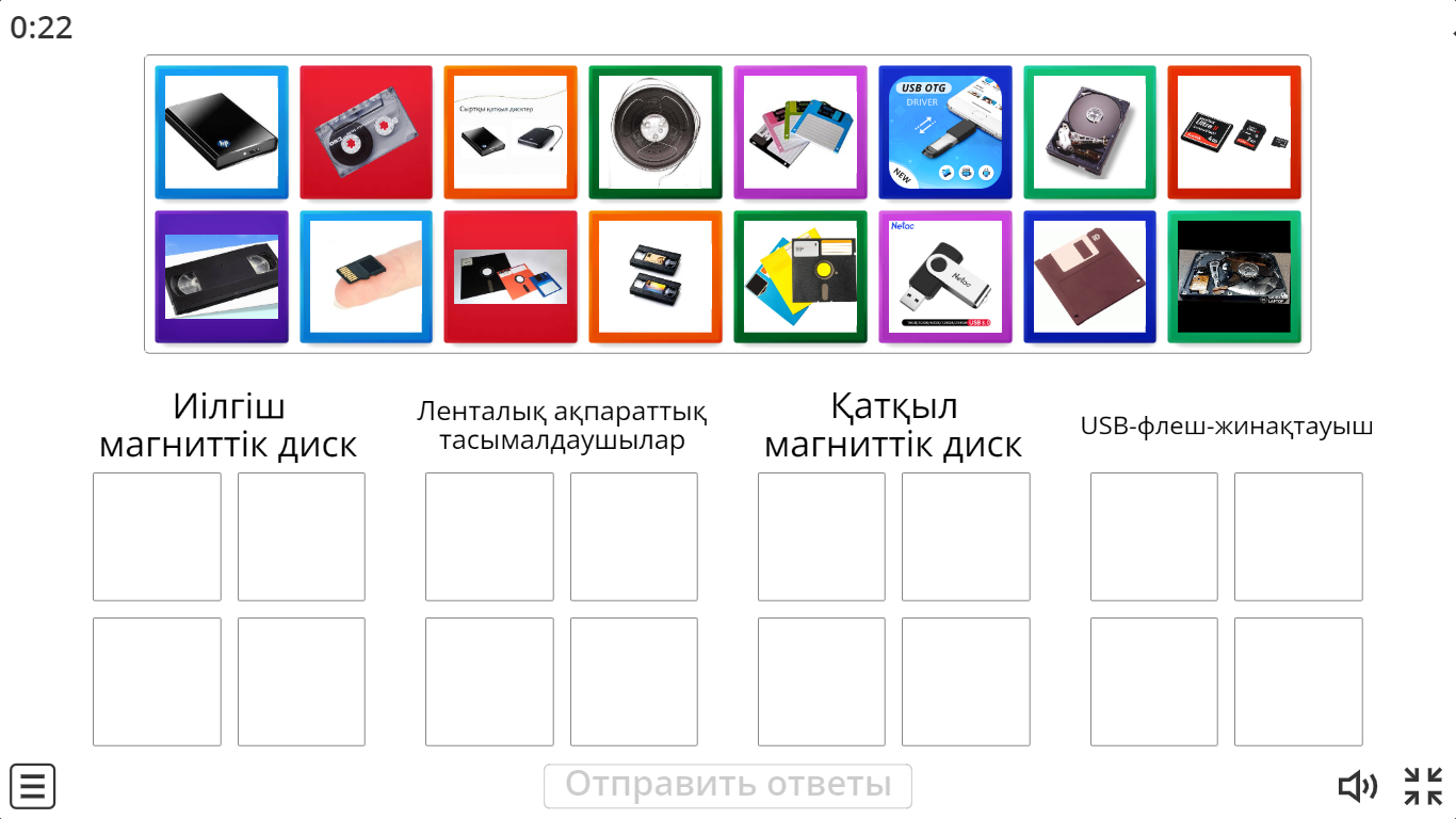 Презентация, видео проектор, компьютер, дисктер, USB-флеш-жинақтауыш, қатқыл диск |