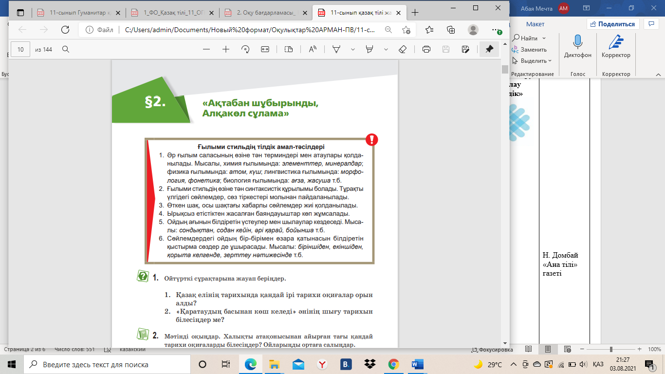 Тапсырма. Оқылым мәтінінің ғылыми стильде жазылғанын дәлелдеңдер.