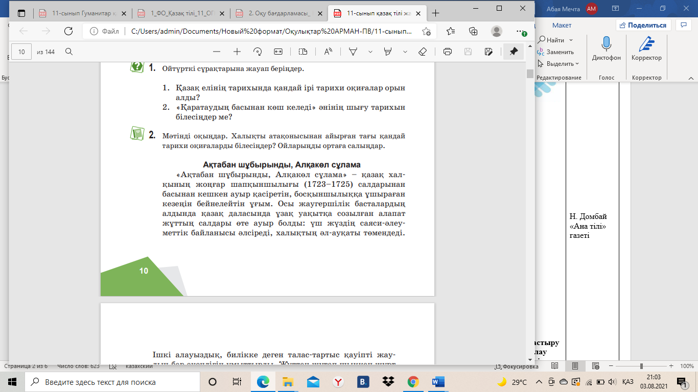 2.Мәтінді оқыңдар. Халықты атақонысынан айырған тағы қандай тарихи оқиғаларды білесіңдер? Ойларыңды ортаға салыңдар.