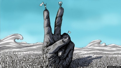 Иран суретшісі Алиреза Дарвиштің 2011 жылдың соңында салған "Араб көктемі" деп аталатын суреті. |