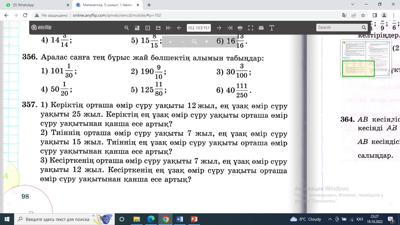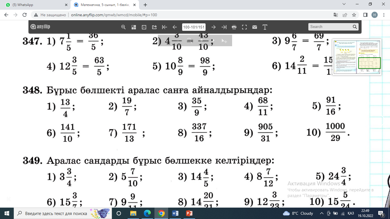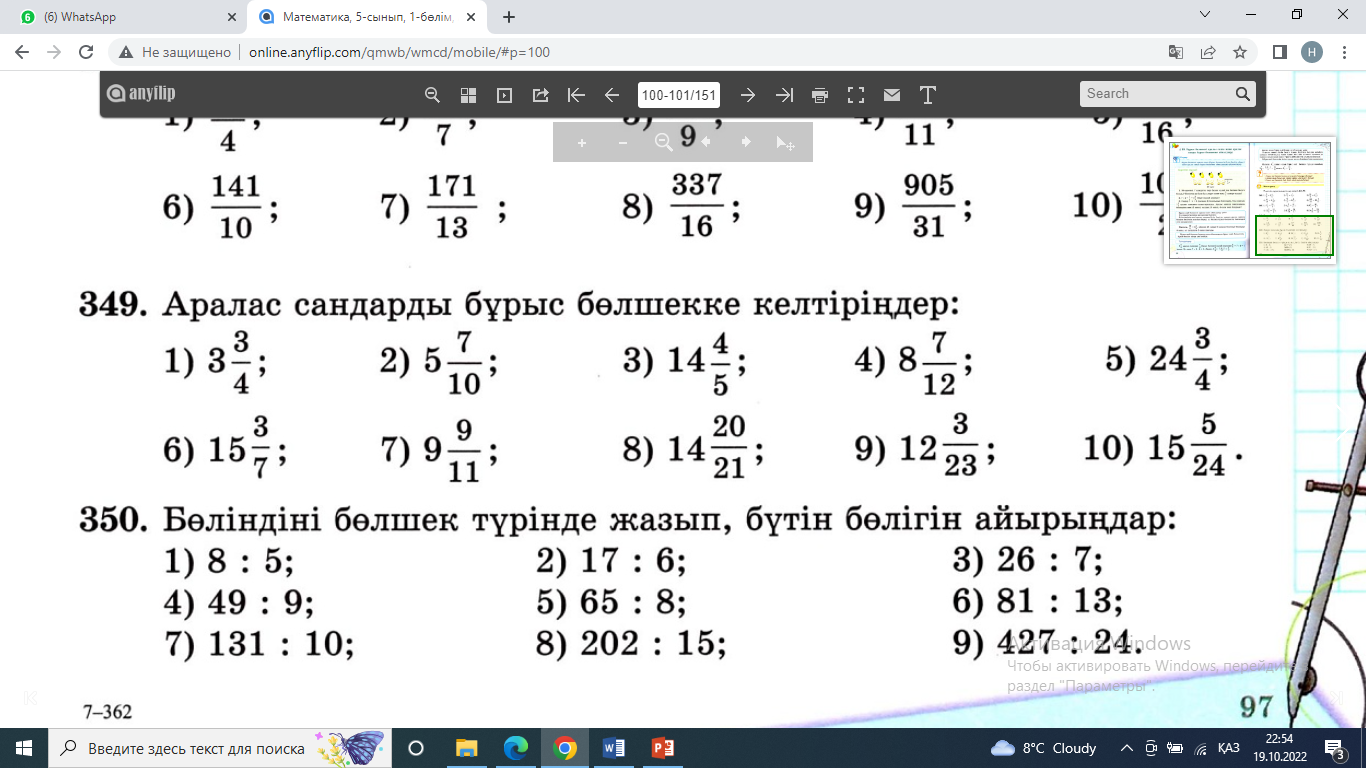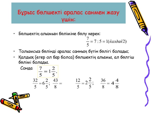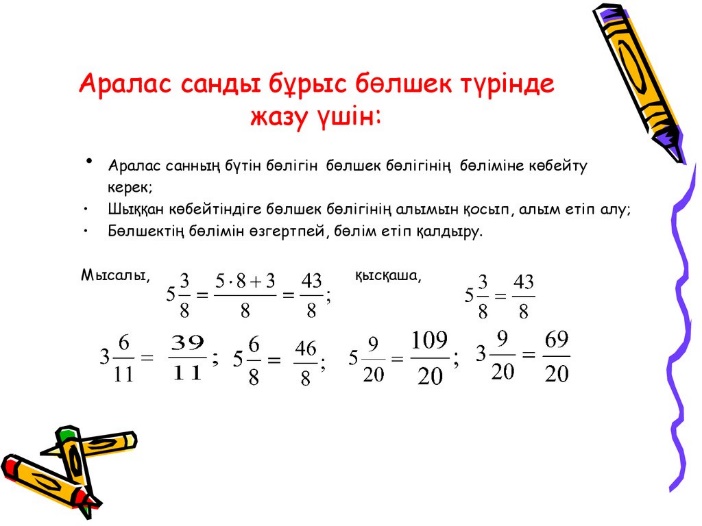 Бұрыс бөлшекті аралас санға айналдыра алады Аралас санды бұрыс бөлшекке айналдыра алады |