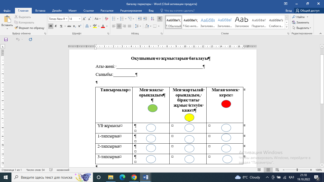 Әр оқушы өзіне берілген параққа өзін-өзі бағалайды Формативті бағалау |