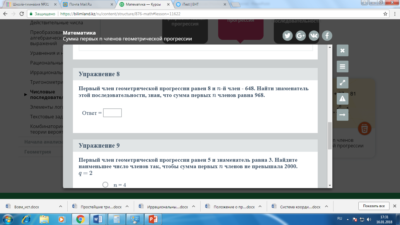 4. Формула n-го члена геометрической прогрессии |