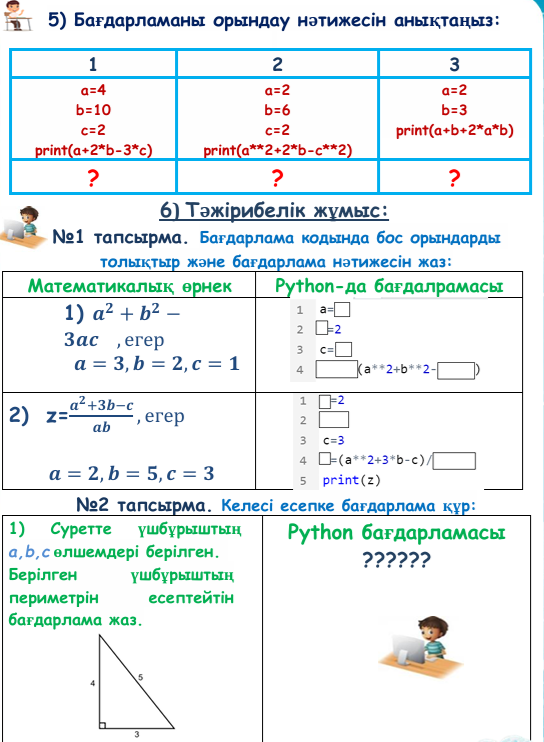 6.3.2.1 Python тіліндегі сызықтық алгоритмдерді жазу; |