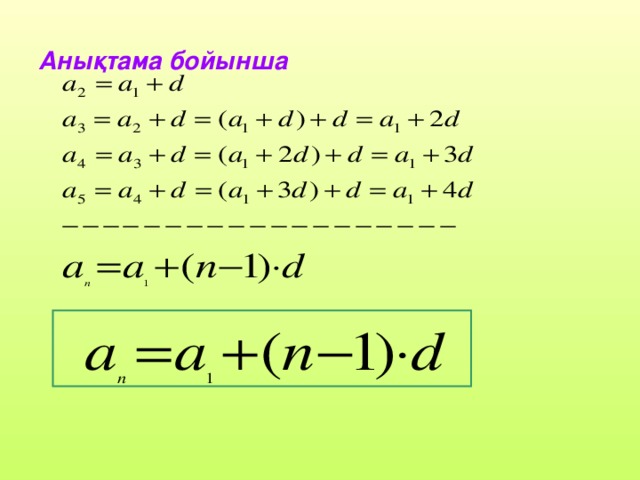Арифметикалық прогрессия ,прогрессияның n-ші мүшесінің формуласы |