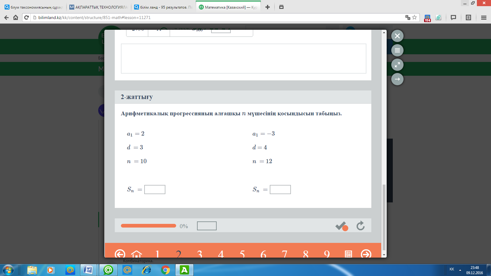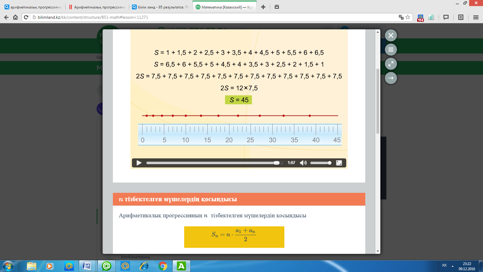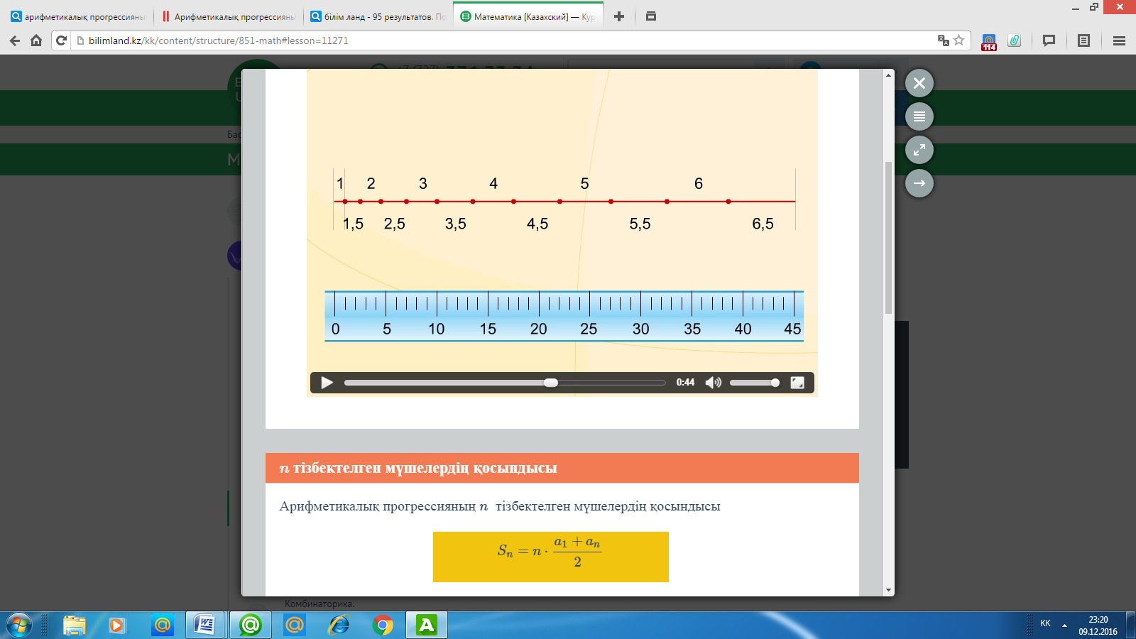 Арифметикалық прогрессияның алғашқы n-мүшесінің қосындысының формуласы, ашық сабақ 9-сынып