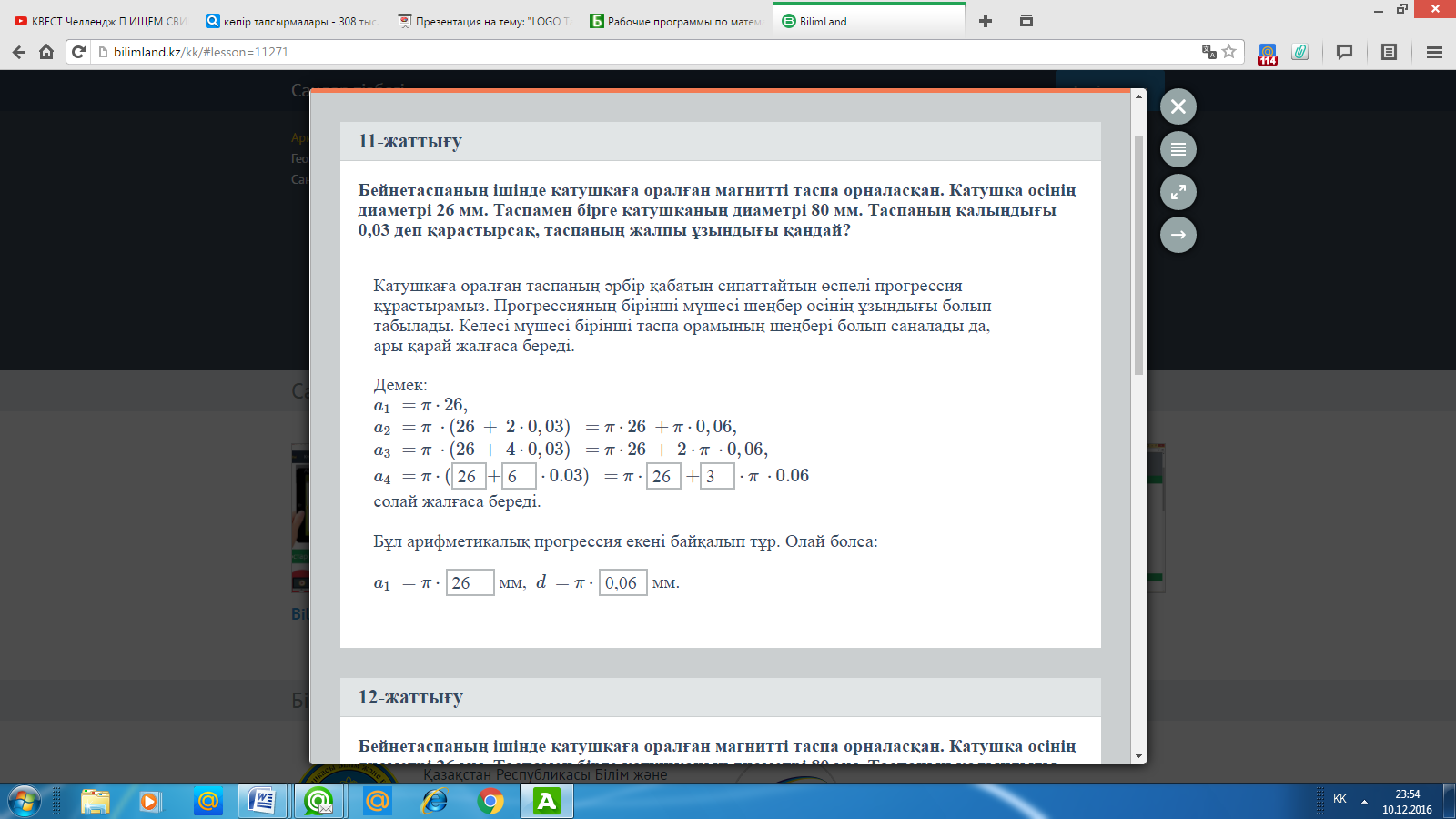 Сілтеме:https://bilimland.kz/kk/content/structure/851-math#lesson=11271 Жаттығуды орындап, жауабын компьютерге енгізеді.