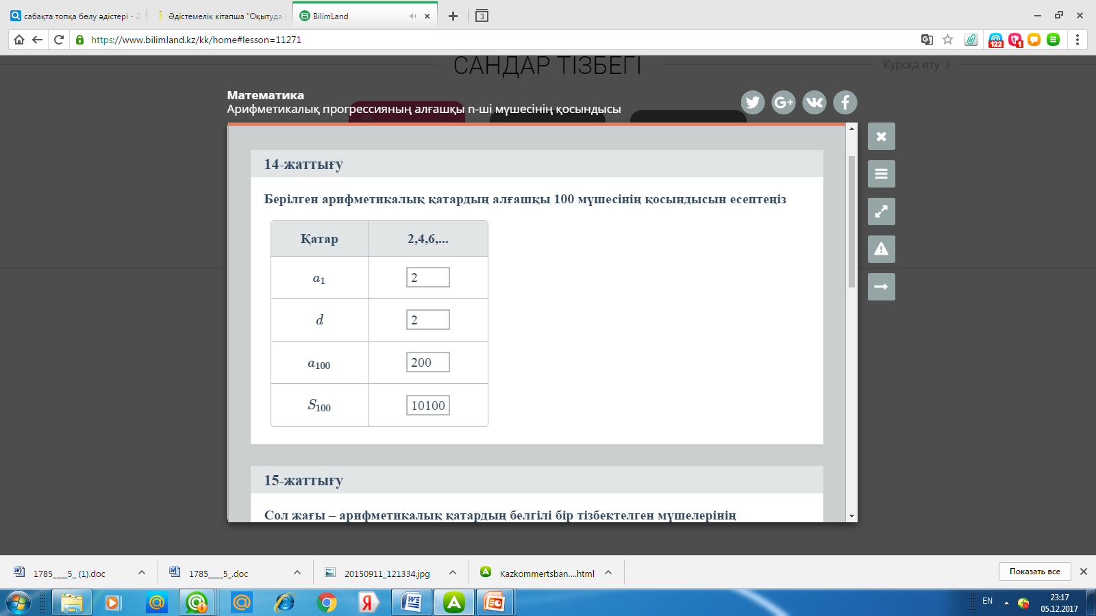 Арифметикалық прогрессияның өмірдегі маңыздылығын түсінеді, формуланы қолдануға дағдыланады. |