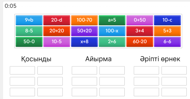 Дексриптор: Берілген сандар мен әріптерден теңдік, теңсіздік, өрнек құрастырады 3б