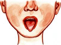 «пя-пя-пя ...» деп айтқызу. Ауызды ашып тұрып
