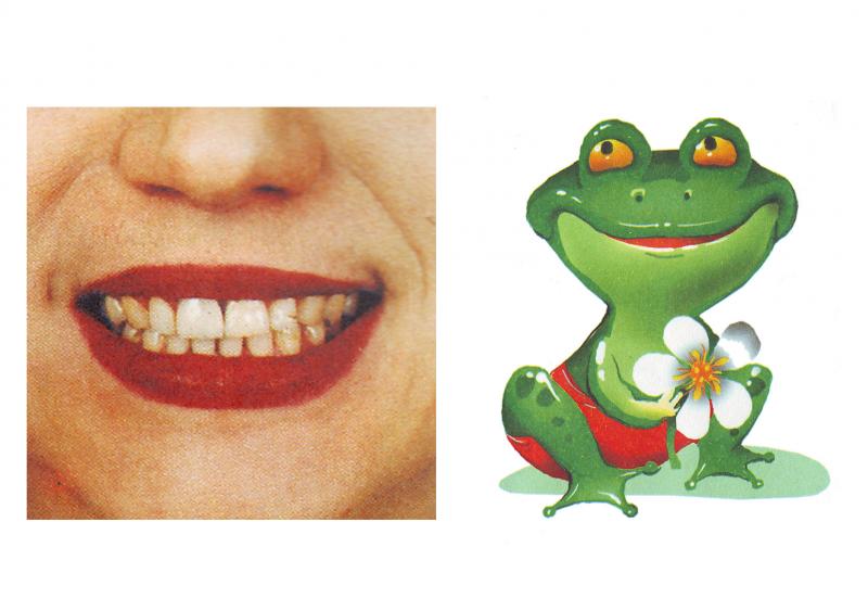 сипаттамасы: Жымиып, тістерін көрсетіп, аузын ашып, жалпақ