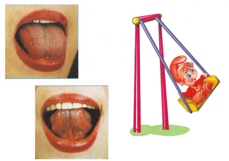 Әдістемелік нұсқау: 1. Астыңғы жақ қимылдамай тек тіл қозғалыста болуын қадағалау. 2. Тілдің қозғалысы симметриялық болуы керек.