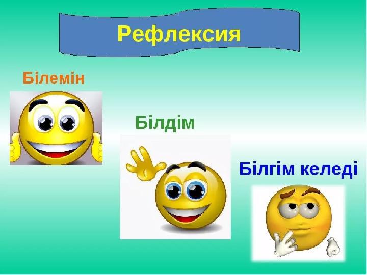 Оқушылар бүгінгі сабақты қандай деңгейде түсініп,білгендерін стикерді таңдау арқылы көрсетеді . Сары стикер бәрін жақсы түсінген, жасыл кейбіреулерін дұрыс түсінбеген, көк стикер білгім келеді дегенді оқушылар таңдап бүгінгі сабақтағы білім деңгейінің қаншалықты нәтижеге жеткендігін көрсетеді |