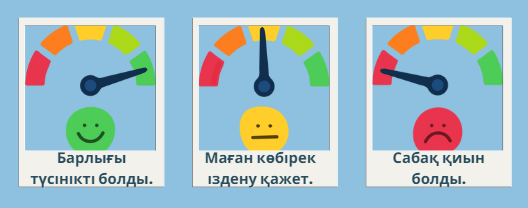 Сабаққа кері байланыс қалдыраады. Жұмыс парағында Өзін өзі бағалап бағалап сабақтың соңында хабарлайды. |