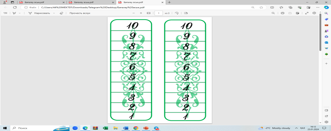 Мұғалімнің кері байланысы. Оқушылар өзін-өзі бағалау парағын мұғалімге өткізеді. Бағалау жүйесі 10 баллдық жүйемен іске асады. |