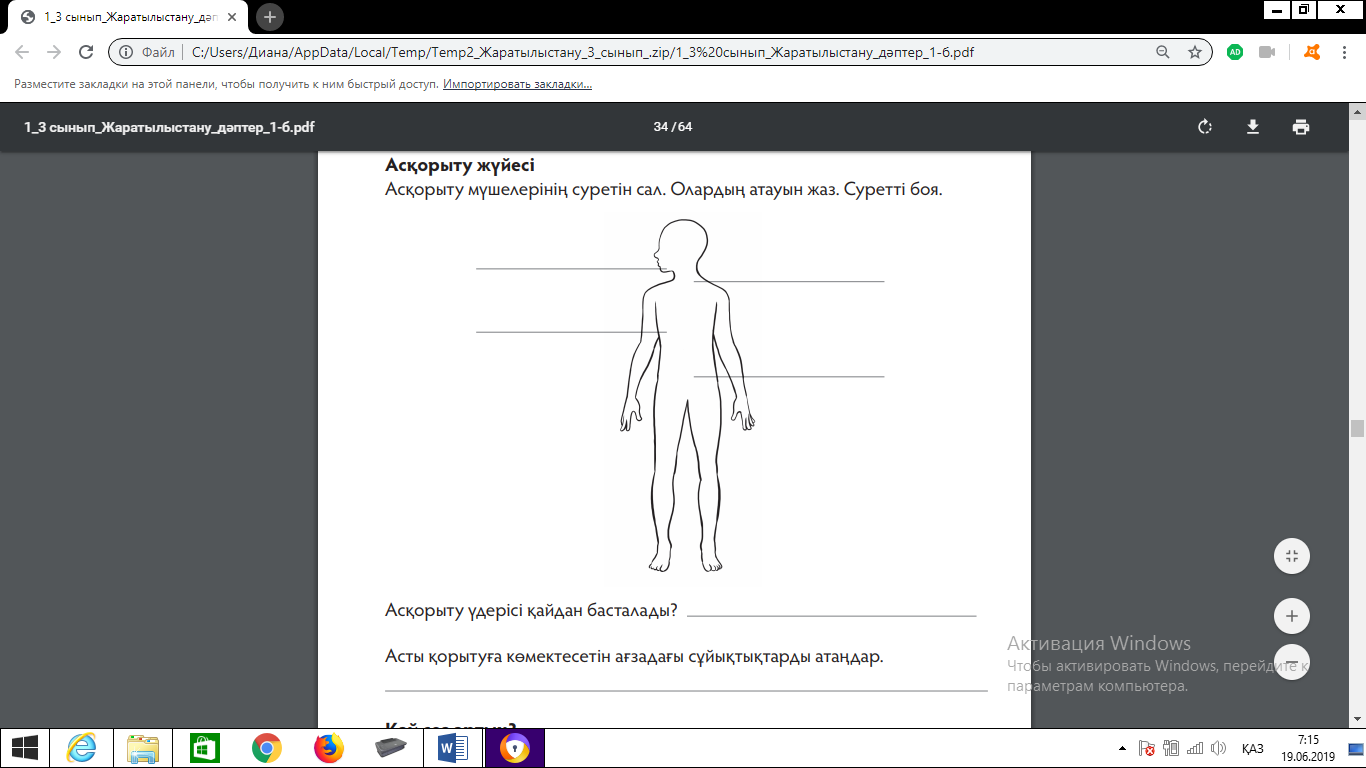 Асқорыту мүшелері: ____________________________ • Берілген сұрақтарға сүйеніп, асқорыту жүйесінің рөлі туралы әңгімеле. − Асқорыту мүшелерінен ас қандай ретпен өтеді? − Тамақтану арқылы ағзада не жинақталады? − Тамақтанудың ағза үшін қандай маңызы бар? − Қалай тамақтану керек? Дескриптор Білім алушы - асқорыту жүйесінің мүшелерін атайды; - тамақтанудың адам өміріндегі рөлі туралы әңгімелейді ҚБ: «Үш жүрек» Үлкен жүрек – «бәрін орындадым» Орташа жүрек – «қате жіберіп алдым» Кіші жүрек – «қиындыққа тап болдым» (Ұ) Қарқын бойынша_саралау «Ойлан,тап» әдісі Тапсырма: Қима қағазға жазылған сөздерді /асқазан,өңеш, ауыз қуысы/ ағзаға орналастыр. Асқорыту қандай кезеңдерден тұрады?