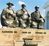 Сұраққа жауап айтады. Өткен тақырыпты пысықтайды Оқушылар сюжетті сурет бойынша әңгіме құрайды: «Балалар қалаға барды. Қастарында күшіктері бар. Олар үш кісінің ескерткішіне таңдана қарады». Әңгімені сөйлемдерге талдайды Әр буындағы дыбыстарды тұтастырып, «бір дыбыс» сияқты қосып, яғни дауыссыздан дауыстыға қарай және дауыстымен үндестіріп оқиды. Оқушылар жазу дәптеріндегі тапсырмалар ды орындайды Жеке жұмыс жасайды Сөздерді оқиды Жұмбақтың жауабын табады: үкі,түлкі,түйе. Оқушылар өздеріне берілген саралау тапсырма ларын орындайды. Кері байланыс жасайды |