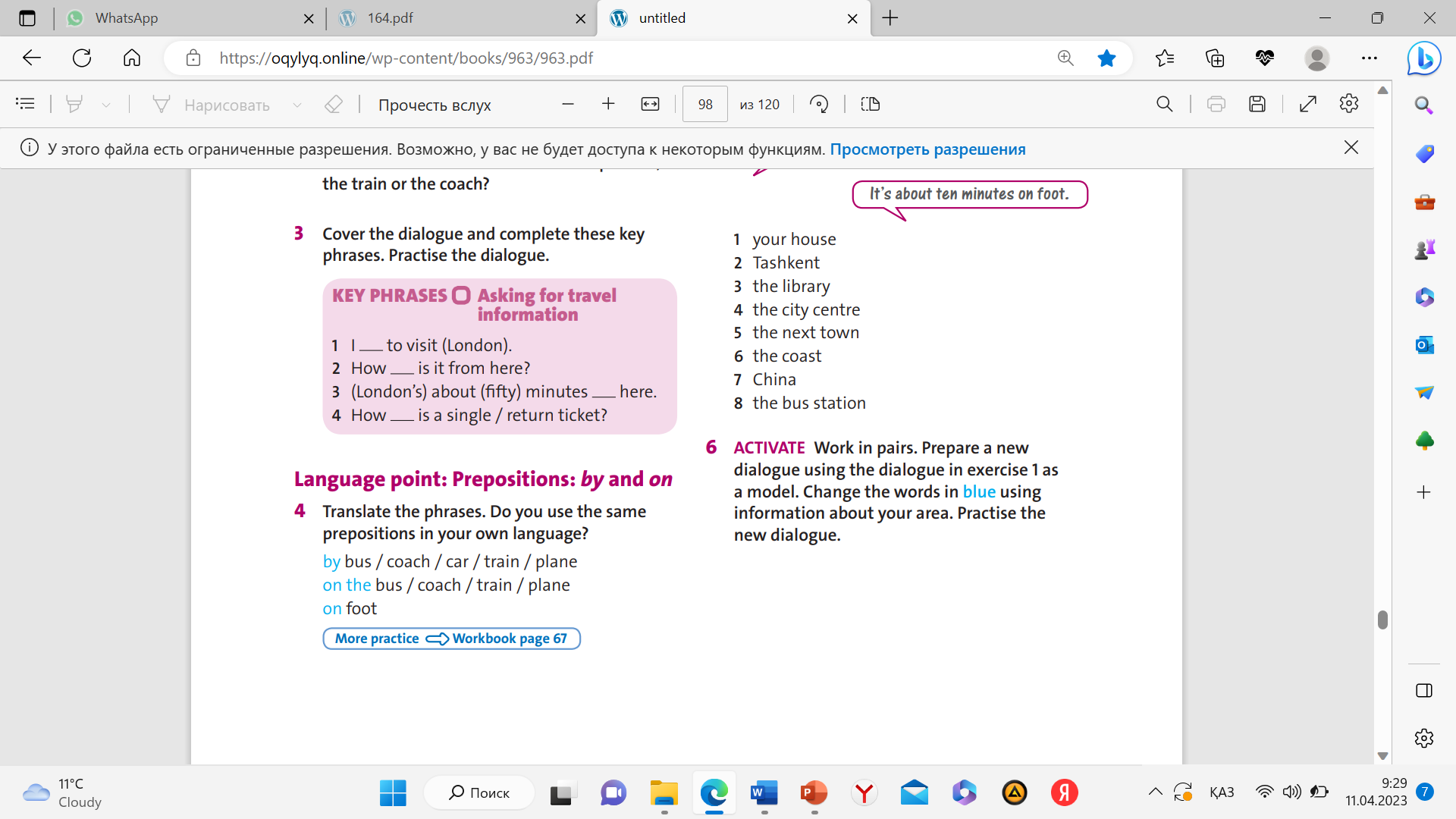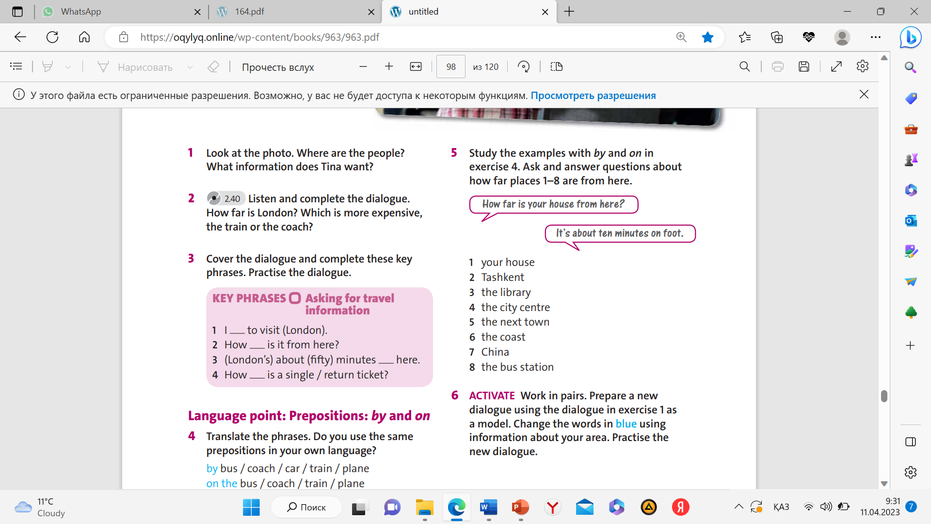 Ex 4 LANGUAGE POINT Prepositions BY and ON Translate the key phrases