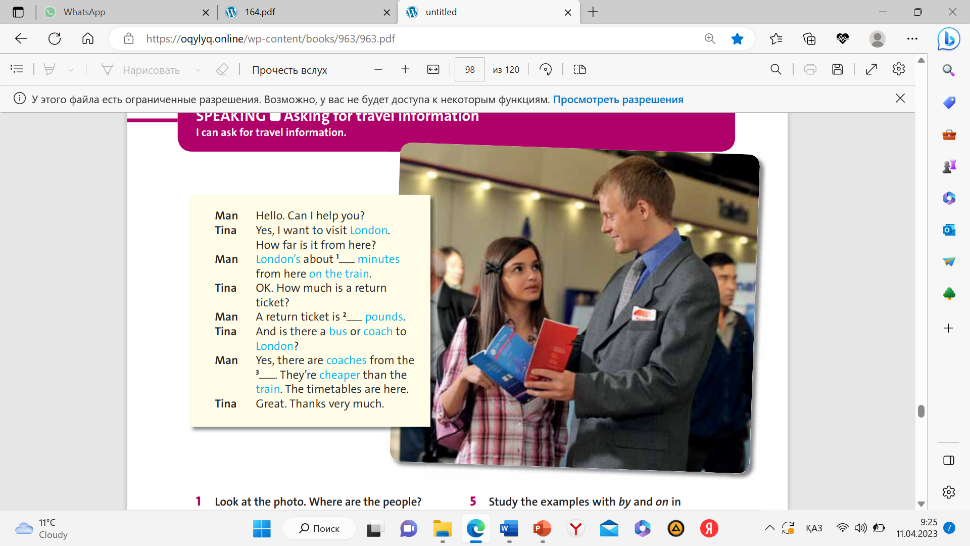 Theme of the lesson: Asking for travel information