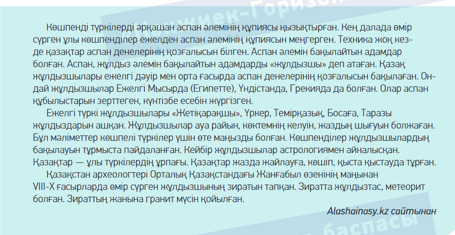 1-сабақ. Аспан әлемін зерттеген ұлы көшпенділер. |