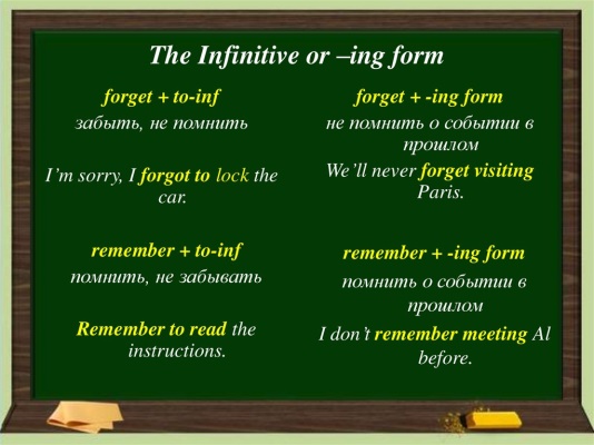 • Pupils read the newspaper article and put the verbs in brackets into the correct infinitive, -ing forms ANSWERS 1 to develop 2 treating 3 practise 4 to allow 5 to create 6 feel 7 working 8 teaching 9 to attract 10 using 11 to learn •Pupils complete the exchanges with an infinitive, -ing forms of the verbs in the brackets. ANSWERS 1 applying (-ing form after the verb consider), working (mean + -ing form = involve) 2 redo (infinitive without to after the verb make), to be (to-infinitive in the expression to be honest), to pass (to-infinitive after the verb expect) 3 to find (try + to-infinitive = doing one's best), taking (try+-ing form = doing something as an experiment), present (infinitive without to after modal verbs) 4 to have (to-infinitive after would like), to tell (mean + to infinitive = intend to •Pupils rewrite the sentences using the verbs in brackets in the correct form ANSWERS 2 Damira claims to have been working since 7 am. 3 They hope to have finished refurbishing the office by May. 4 They appear to be studying hard. 5 He tends to be late for work (a lot). 6 They seem to be running a successful business. 7 Kanat appears to have missed the train. 8 Lunara seems to have been absent for a long time. •Pupils make sentences about yourself. ANSWERS A: I regret turning down the job offer in New York. B: I look forward to going to university in September |