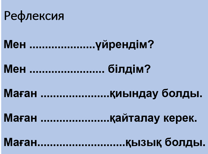 Сабақтың соңы Ой толғаныс. Рефлексия 3 мин.