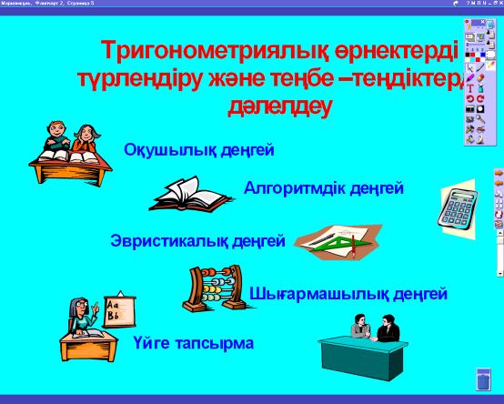 Тәрбиелілігі: Тригонометриялық өрнектерді түрлендіріп