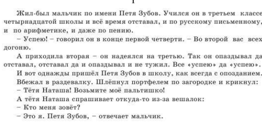 7. Как Петя представился тёте Наташе?Ответ: Петя ответил: «Это я. Петя Зубов.»