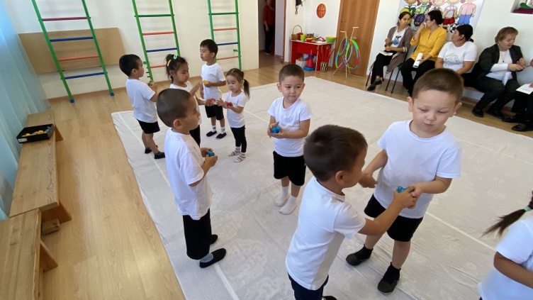 баланың денсаулығын сақтау және нығайту, дене жаттығуларын жасауға қызығушылықтарын арттыру, қимылдарды дұрыс және дәл орындау, оларды үлгімен салыстыра талдау жасауға үйрету. Математикалық білім дағдыларын шыңдау, 1-ден 5-ке дейінгі сандарды тура және кері санау.. Топтасып тапсырманы орындау арқылы бір-бірімен тату дос болуға тәрбиелеу.