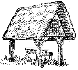 Қояндарға арналған шөмеле және шөп қорғанның ішінде орналасқан оттық.