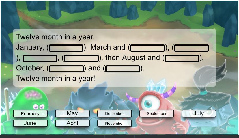 Descriptor: - repeat months after listening Learn about month and days Total: 2 point |