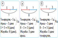 1.5.1.5 қосу мен азайтудың белгісіз компоненттерін табуға берілген есептерді талдау және шығару, кері есептер құрастыру және шығару |