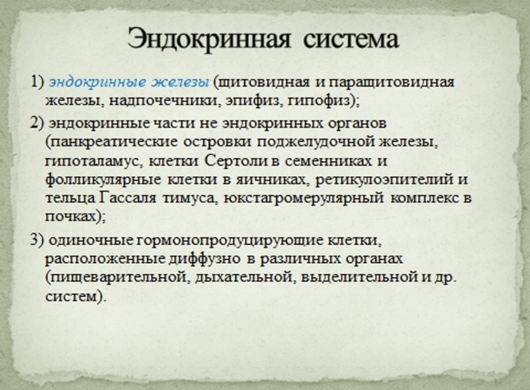 Функций эндокринных желез и заболевания, связанные с ними. |