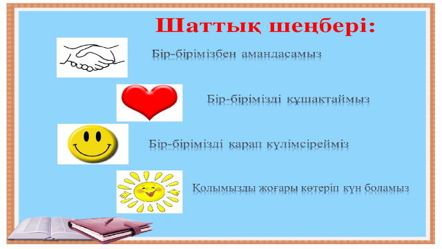 Оқу құралдарын түгелдейді, стикер арқылы амандасады. Үй тапсырмасын ауызша тексеру