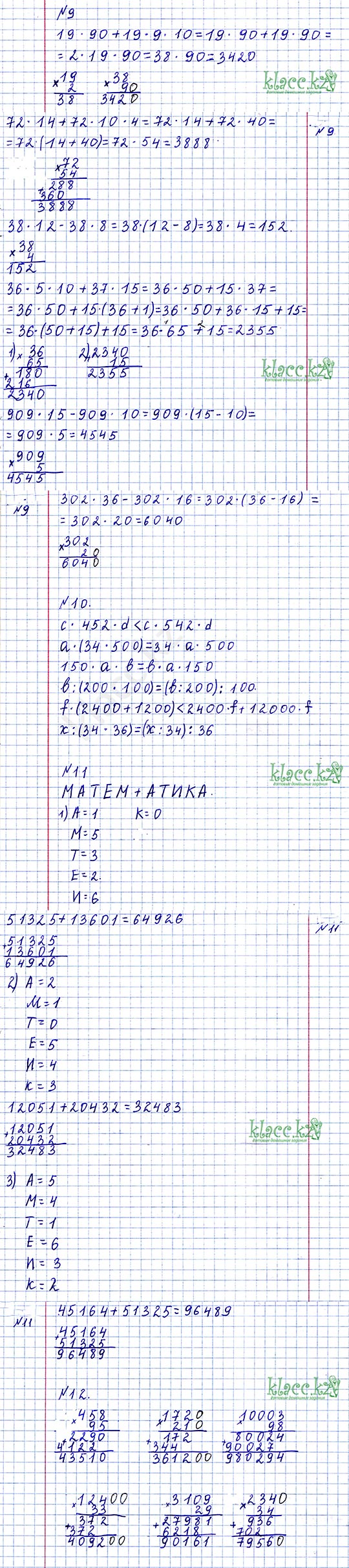 Үй тапсырмасы №5, №12.Баған түрінде есепте