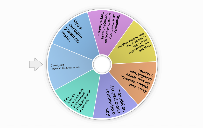 Конец урока: (2 мин) Домашнее задание. Выучить табличные значения тригонометрических функций Рефлексия. Колесо фортуны (5 мин)
