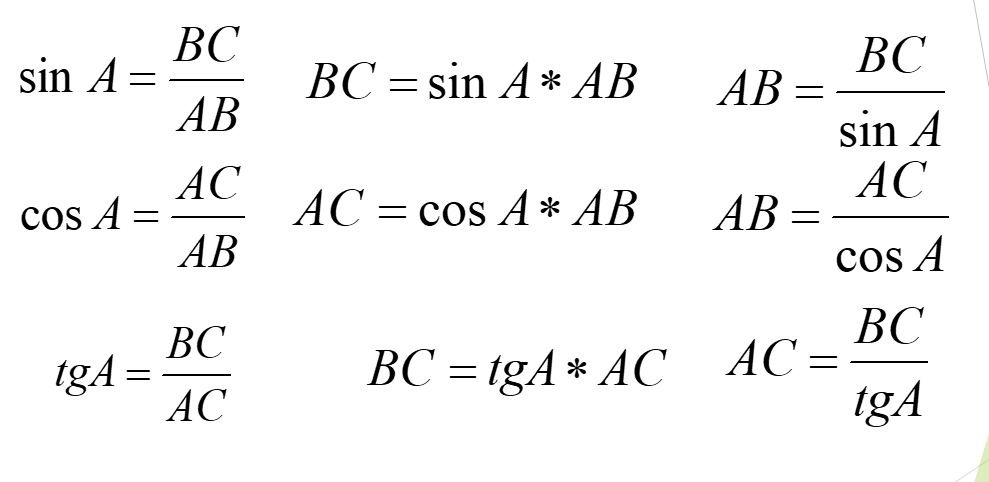 Наша задача научиться вычислять тригонометрические выражения для любого острого угла, но сегодня начнем с углов особенных прямоугольных треугольников 300, 450, 600. Вывод катетов через гипотенузу и острый угол: