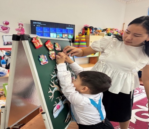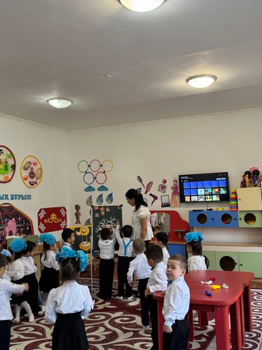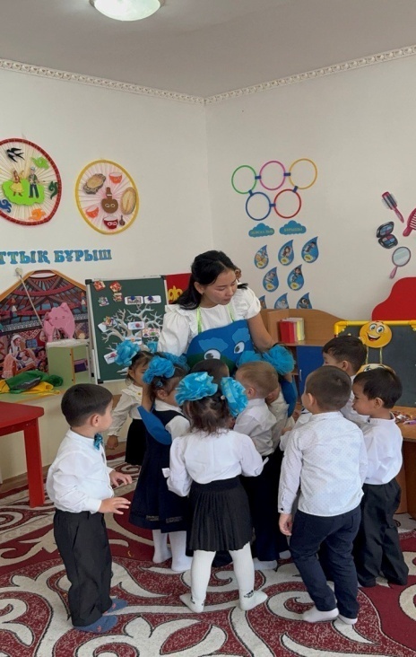 -Балалар,бүгін бізге қонаққа балабақшадағы апайларымыз келіпті.Апайларымызға амандасып алайық.