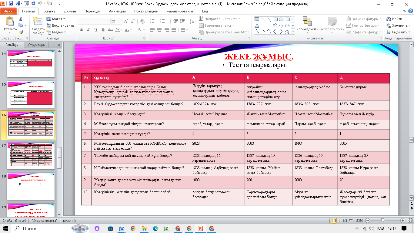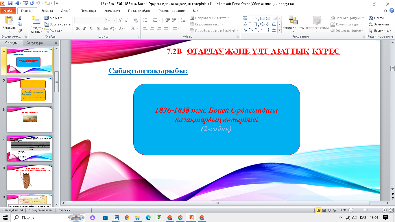 Ашық сабақ. 1836-1838 жылдардағы Бөкей Ордасындағы қазақтардың көтерілісі.