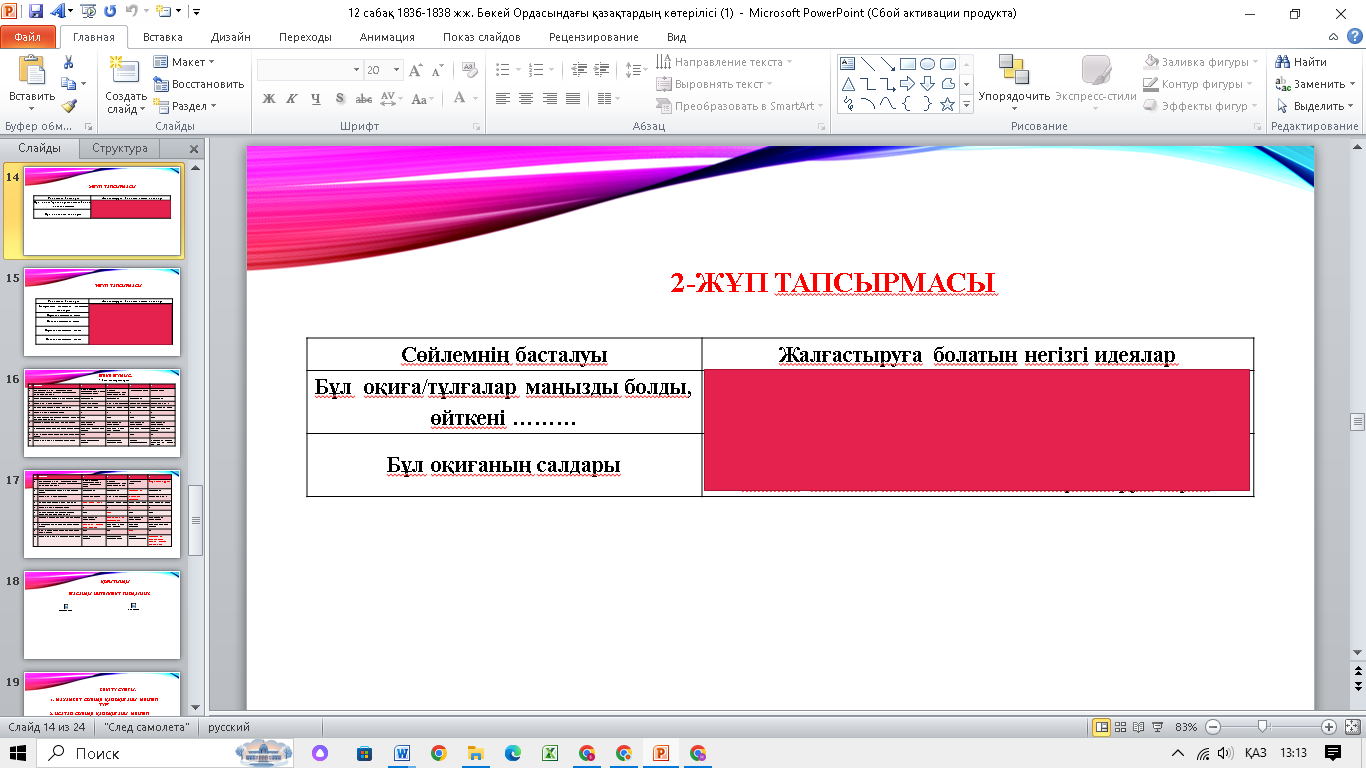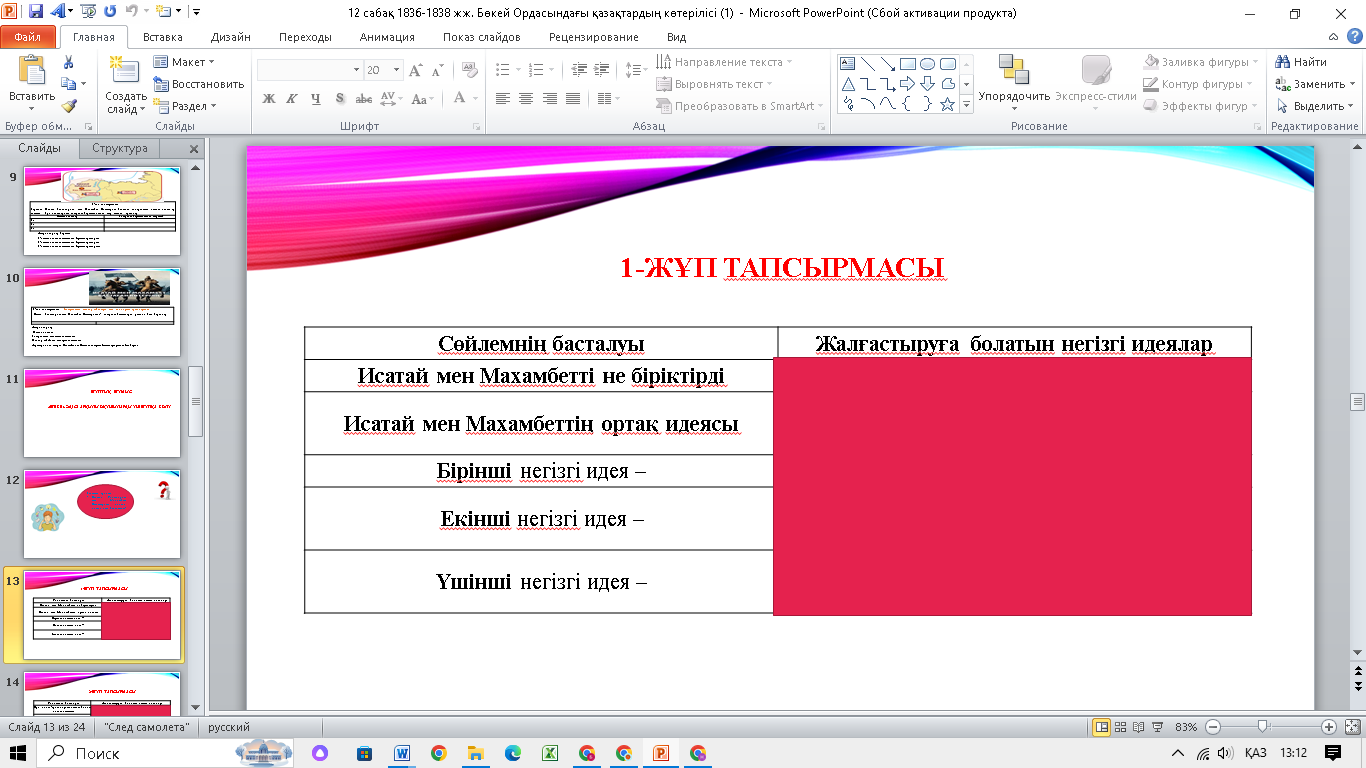 ЖЖ. Зерттеу сұрағы: Исатай Тайманұлы мен Махамбет Өтемісұлын қандай ортақ идея біріктірді? І жұп тапсырмасы