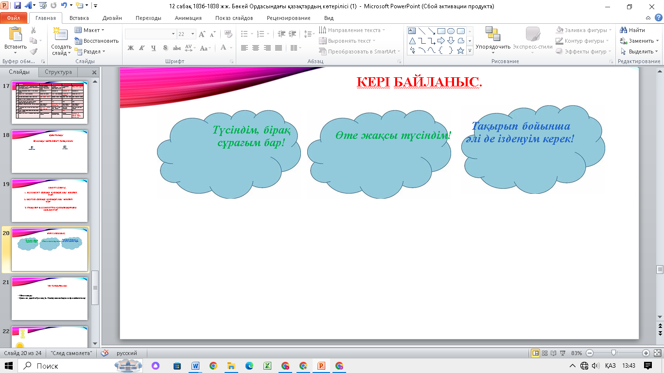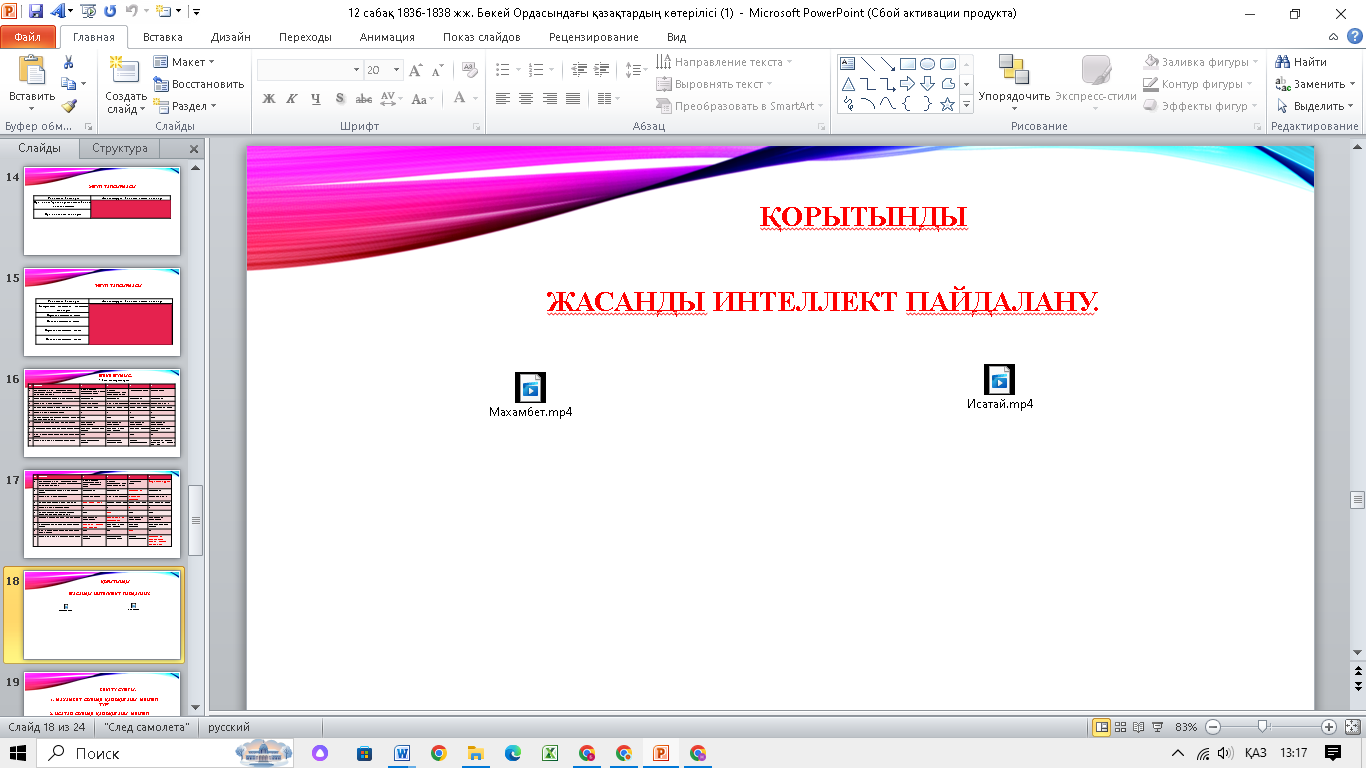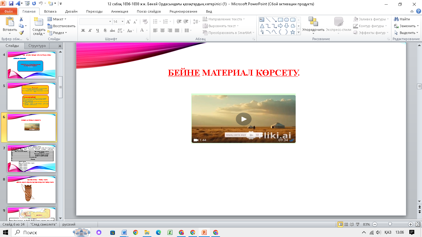 №1 слайд Интербел-сенді тақта Бейнематериал сілтемесі https://youtu.be/oWG9L0Wtk08?feature=shared Интербел-сенді тақта Тапсырмалар жазылған таратпа қағаздар, карталар Тапсырма жазылған таратпа қағаздар |