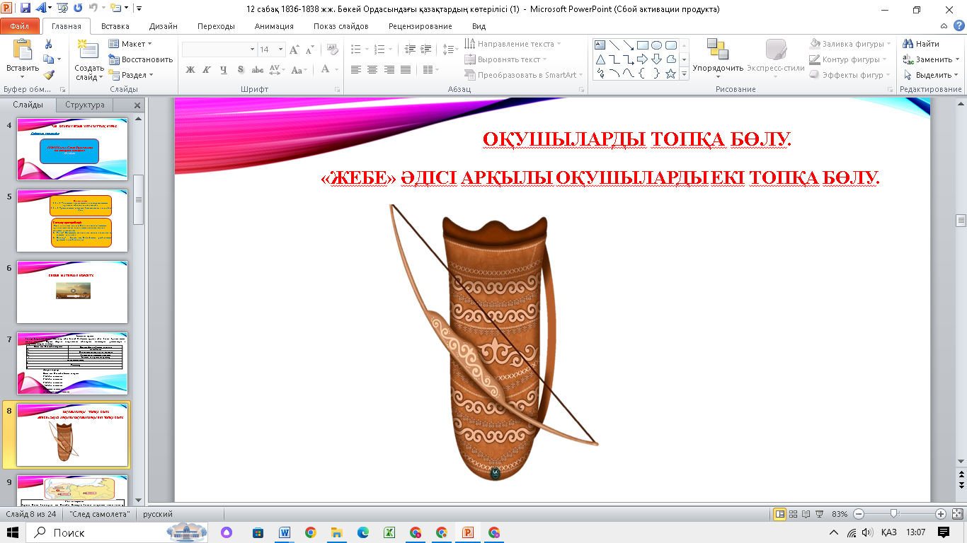 Оқушыларды «Жебе» әдісі арқылы топқа бөлу.
