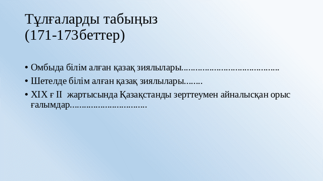 XIXғ. ІІ жартысындағы Қазақстанның білім беру мен ағарту ісінің ерекшеліктері мен мақсат-міндеттерін талдайды |