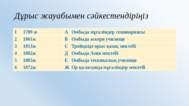 7.2.3.2 XIX ғасырдың екінші жартысындағы білім беру мен ағарту ісінің даму ерекшеліктерін түсіндіру |