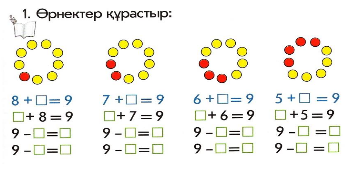 Өз ойларын айтады Мақсатты иықтас досымен қол ұстасып хормен айтады Таратпа парақтармен жұмыс жасайды Есепті оқиды Есепті шығарады Есепті сұлбасына қарап шығарады Жауабын жазады Жеке жұмыс жасайды Жаттығу жасайды Кері есеп жазады Жеке жұмыс орындайды Желкенді бояйды
