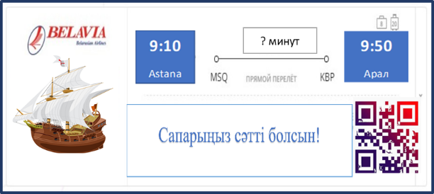Психологиялық ахуал қалыптастыру Әр адам саяхаттағанды жақсы көреді. Жолда көптеген қызыққа кенелуге, адал достар табуға және жай ғана көңіл күйіңді көтеруге болады. Бүгін біз де сендермен бірге Қазақстан қалаларына саяхатқа аттанамыз. Біз қай қалада тұрамыз? -Білім аралына жету мақсатымыз қандай? Функционалдық сауат. тапсырма Ендеше билетіміздегі уақытты,қай қаладан қай қалаға баратынымызды тауып алайық