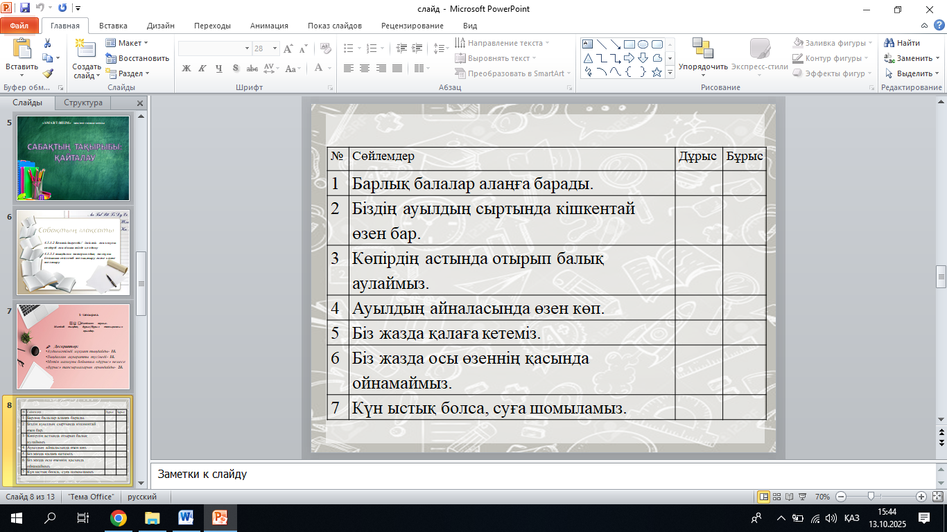 сабақ 1.Тыңдалым. Жазылым Мәтінді тыңдап, дұрыс/бұрыс тапсырмасын орында.