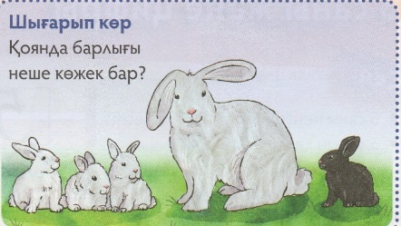- Қоянда неше ақ көжек бар? -Неше қара? - Барлығы неше көжек бар? Жауабы:4 көжек. Есте сақта!