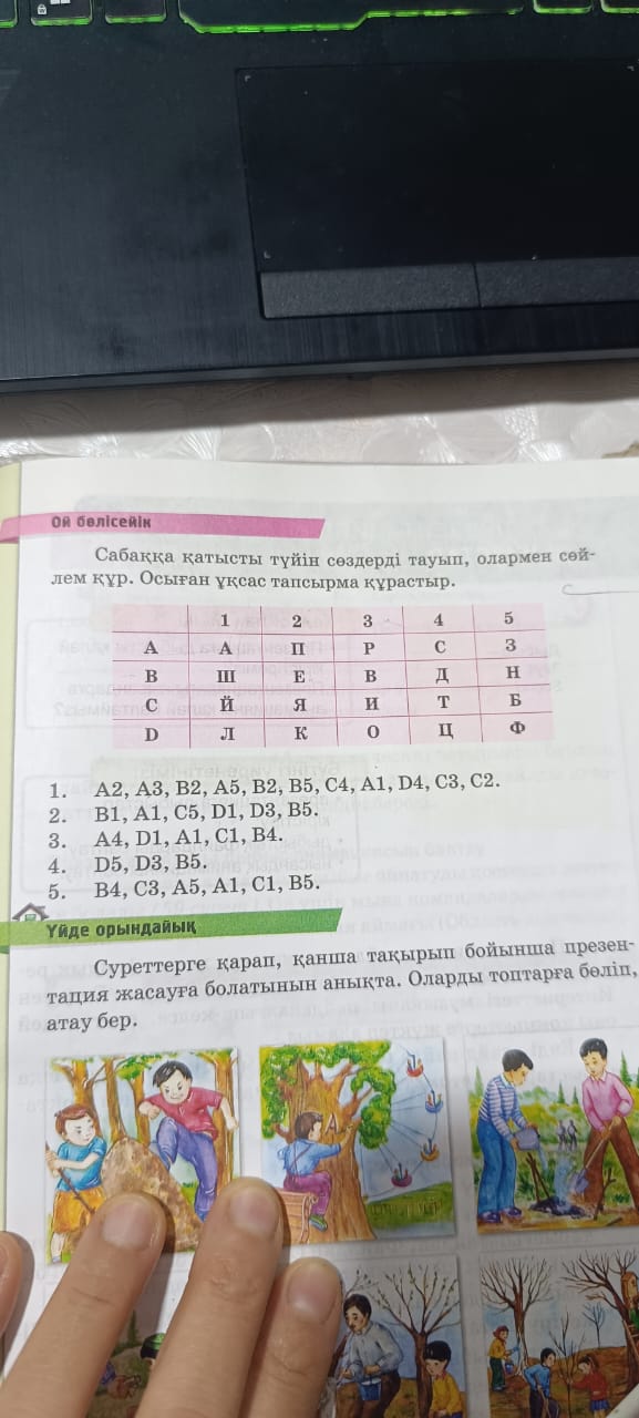 Ноутбук арқылы берілген тапсырманы орындайды. Жауаптарын сол ноутбук арқылы берілген парақтарға енгізеді