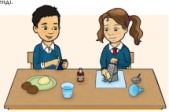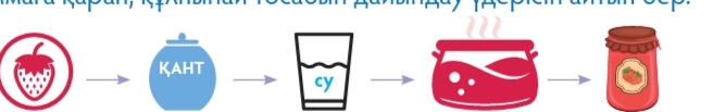 Пиктограмманы зерделеп, оның не бейнелегенін атайды. Сұрақтарға жауап береді. Топпен тапсырманы орындайды. Жентті қалай жасайтынын айтады. Оқулықтағы инфографиканы зерделей отырып, жент жасау үдерісін айтып береді. Сүттен әзірленетінін тағамдарды атайды. Қоспаларға бірнеше мысал келтіріп, заттардың құрамын анықтайды. Картоптан крахмалды қалай алатынын анықтайды. Крахмалдың қайда және қандай қасиеті үшін қолданылатыны туралы қорытынды жасайды. Заттардың пайдасы мен зияны туралы әңгімелейді. Суреттегі заттардың атауын атайды Заттардың үдерісін біледі Кестені толтырады Тұжырымның шындық немесе жалған екенін анықтап, астын сызады Сөйлемдегі бос орынға жазады Дұрыс жауабын белгілейді |